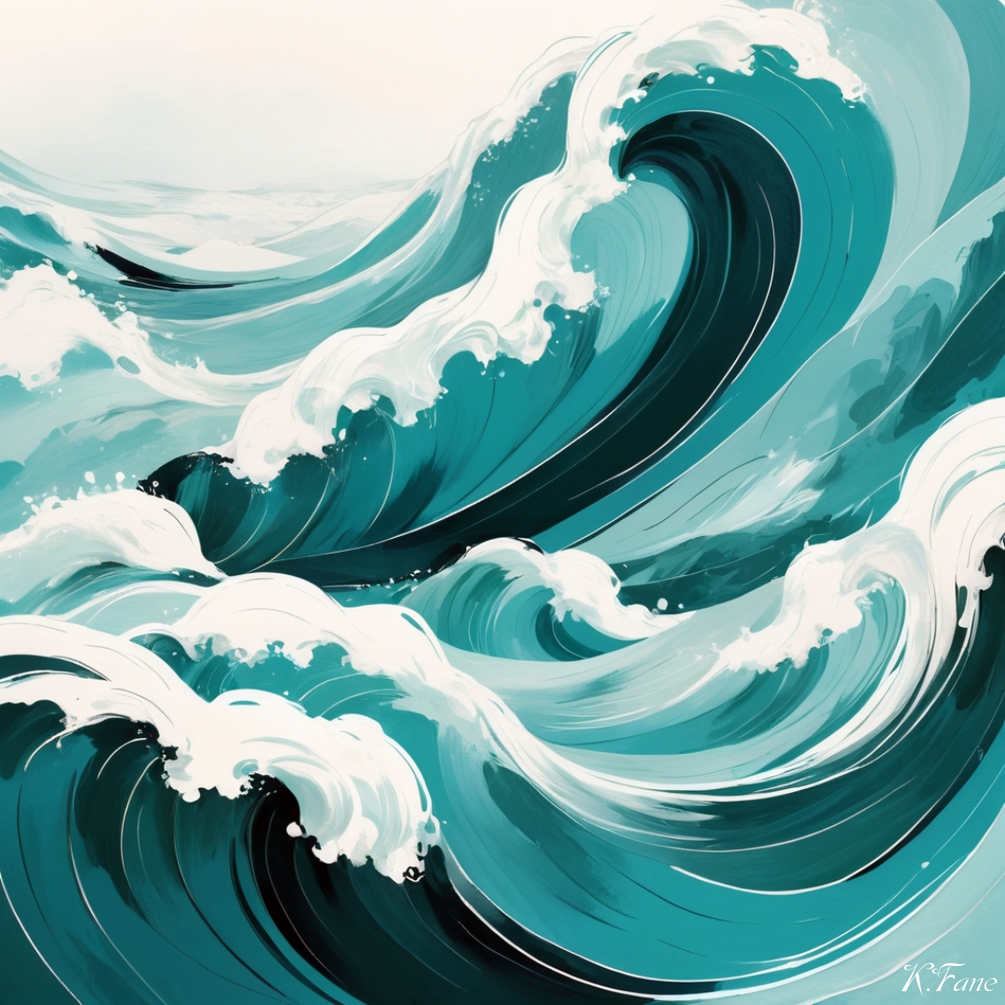Capture calm with Abstract Ocean Waves. Fluid turquoise and white brushstrokes create a dynamic, minimalist design, perfect for study rooms or decor. Download PNG instantly. By Khaen.